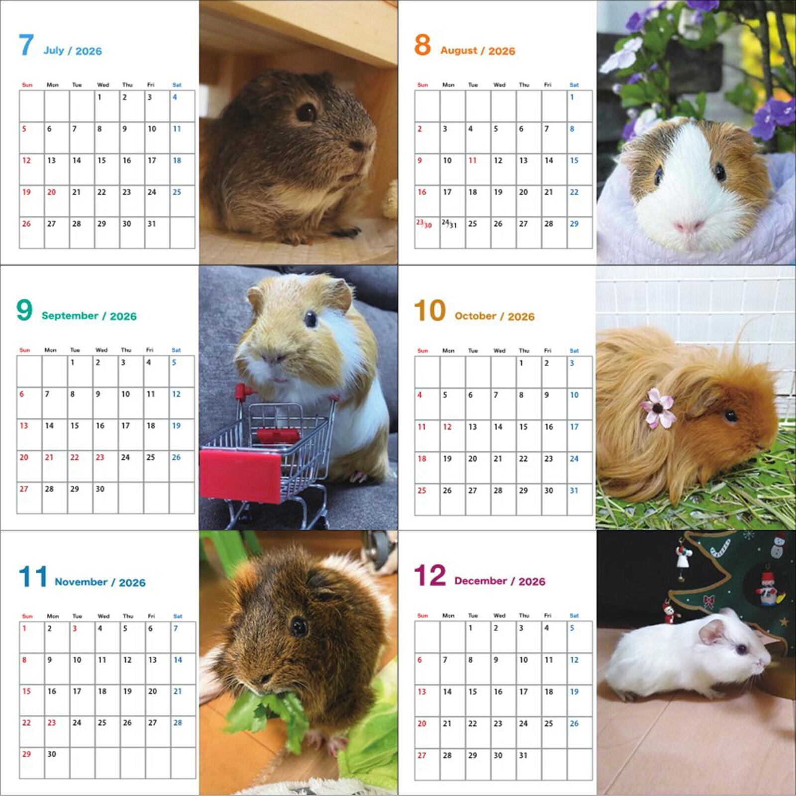 2026 モルモット カレンダー ハガキサイズ スタンド付