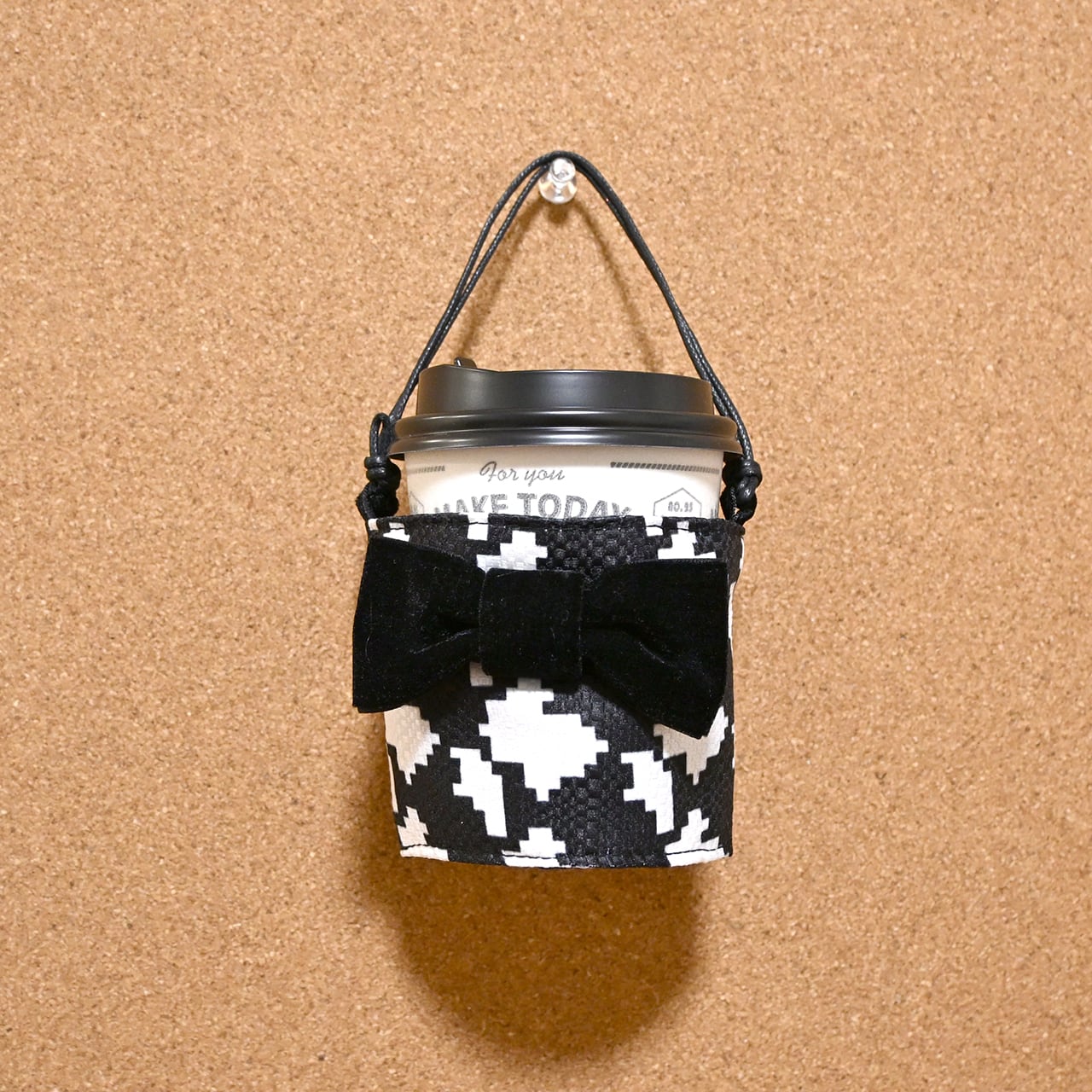 チンチラシルエットのチェック柄(ちんどりチェック)のカップホルダー