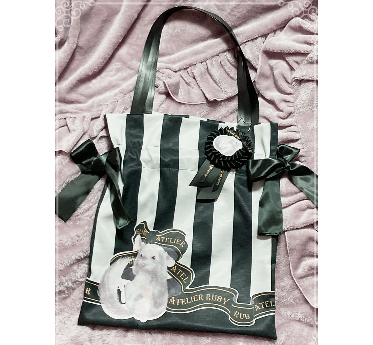 「ストライプリボンチンチラちゃん」トートバッグ